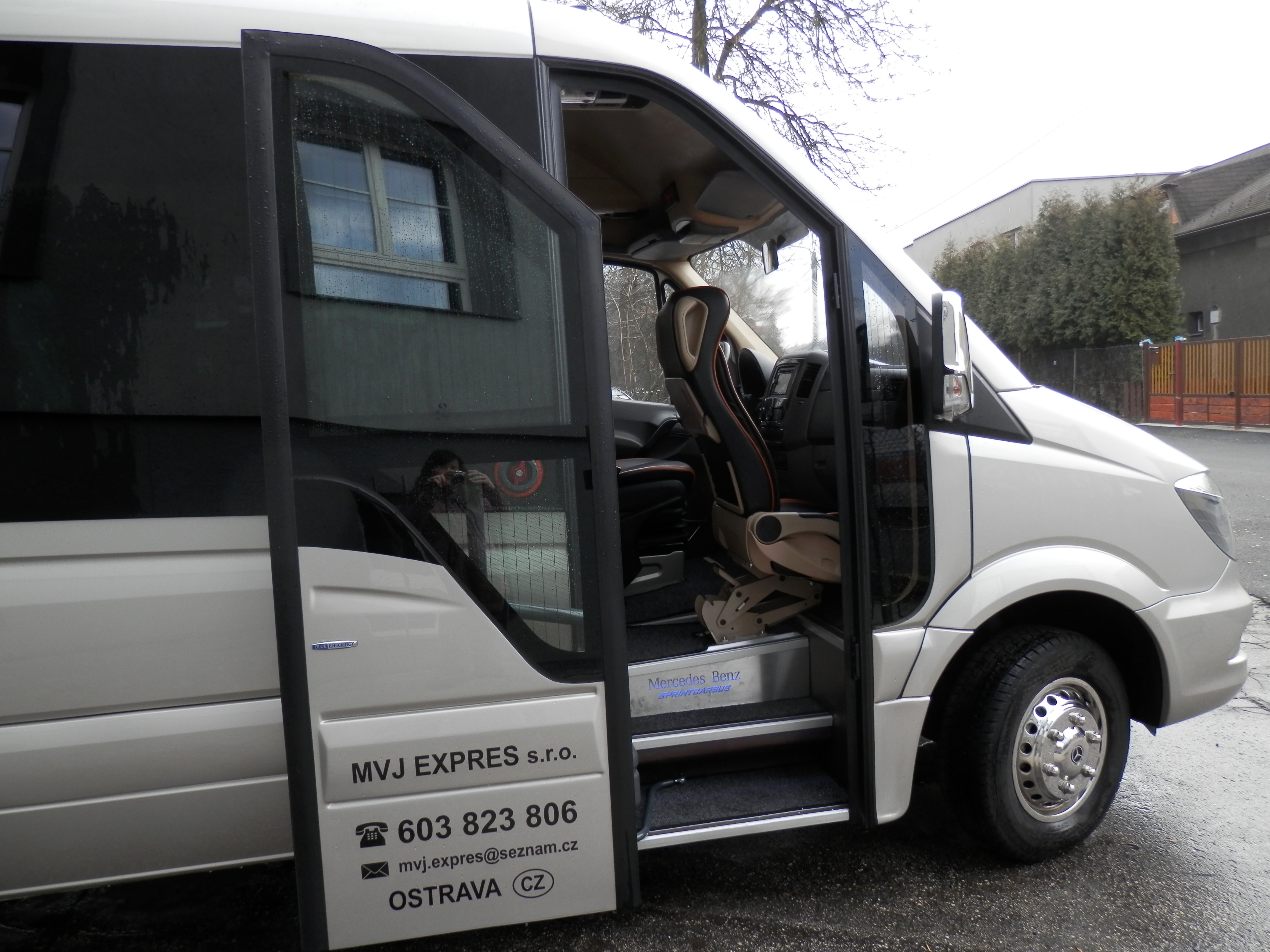 Vybavení našich vozů splňuje všechny požadavky pro pohodlné a bezpečné cestování. Sedadla jsou vypolstrovaná, čalouněná, anatomicky tvarovaná s polohovacím systémem a bezpečnostními pásy. Sedadla jsou také výsuvná do boku. Každé sedadlo má individuální osvětlení. Samozřejmostí je klimatizace, lednice, DVD přehravač, mikrofon a GPS.